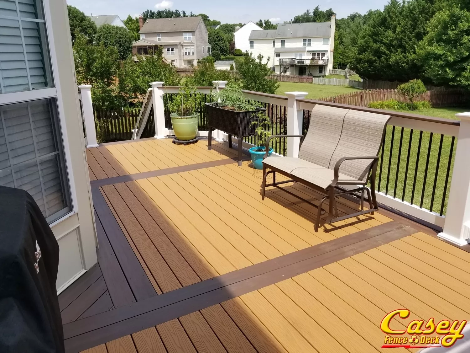Fiberon Good Life Villa Composite decking was laid in a straight pattern with Chestnut transition boards. We also installed a Chestnut picture frame border. - Frederick MD