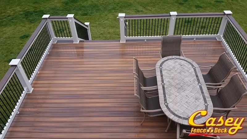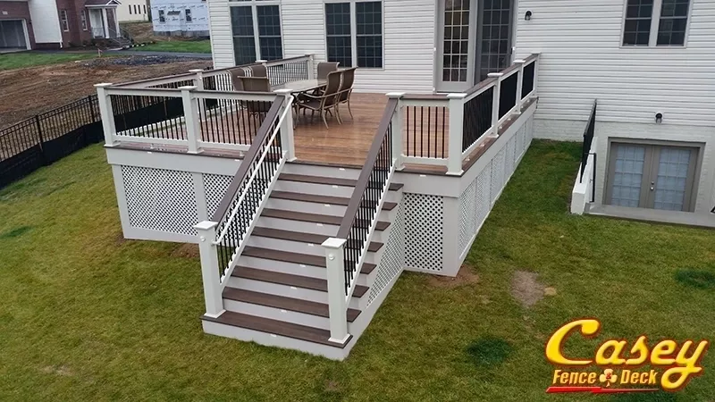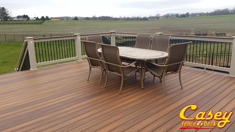 We built this 500 square foot mid level Fiberon Ipe composite deck with Chestnut border, stair treads and rail caps In the new Landsdowne development of Monrovia MD. - Landsdale development in Monrovia, MD.