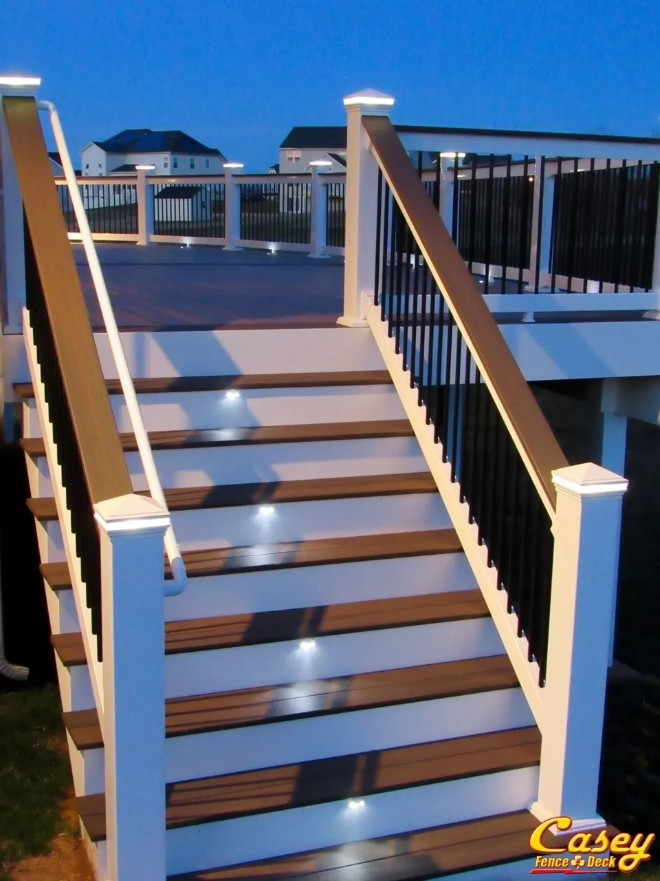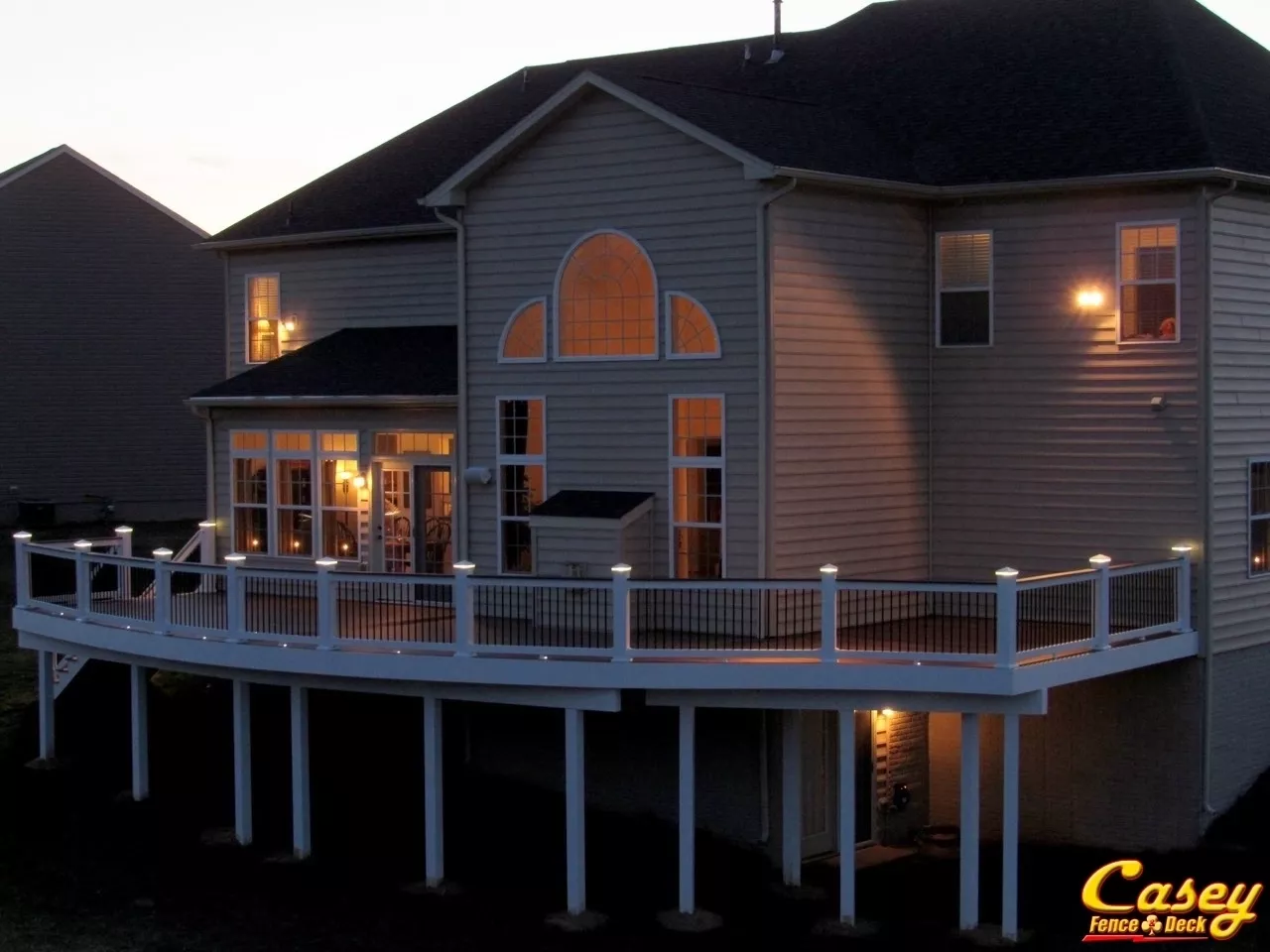There are 15 6x6 Low Voltage LED post cap lights, an equal number of flush mount lights in the deck, lights in the stairs. - Hagerstown MD
