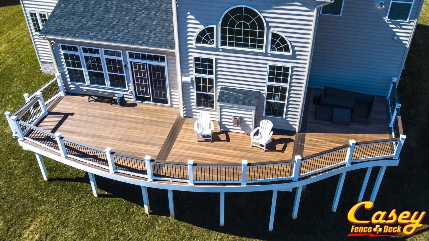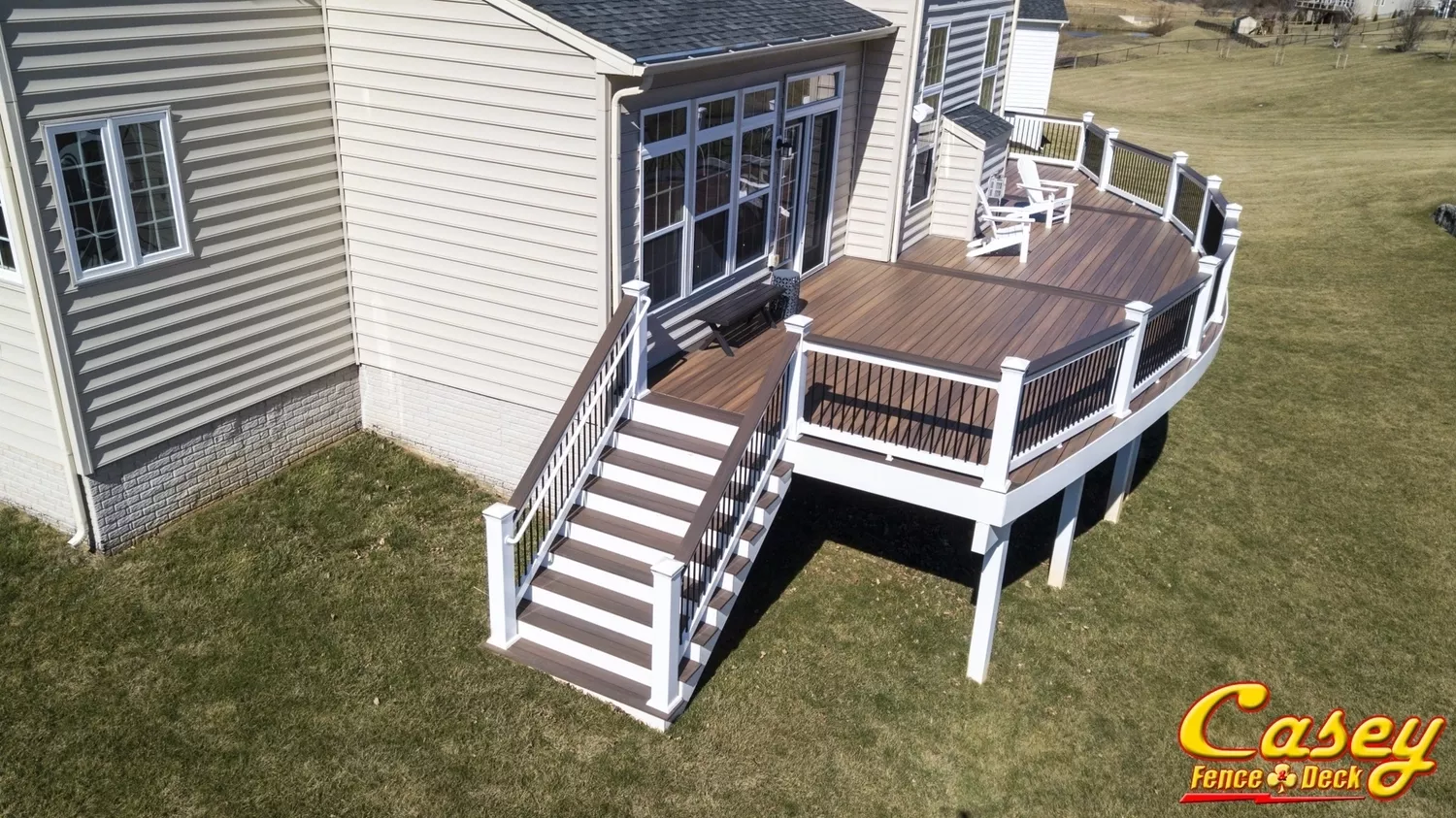 This awesome 700 square foot circular deck was one of our finest projects of 2016. The rounded front extends 37 feet in one direction and then reverses back the other way for the last 13 feet. - Hagerstown MD