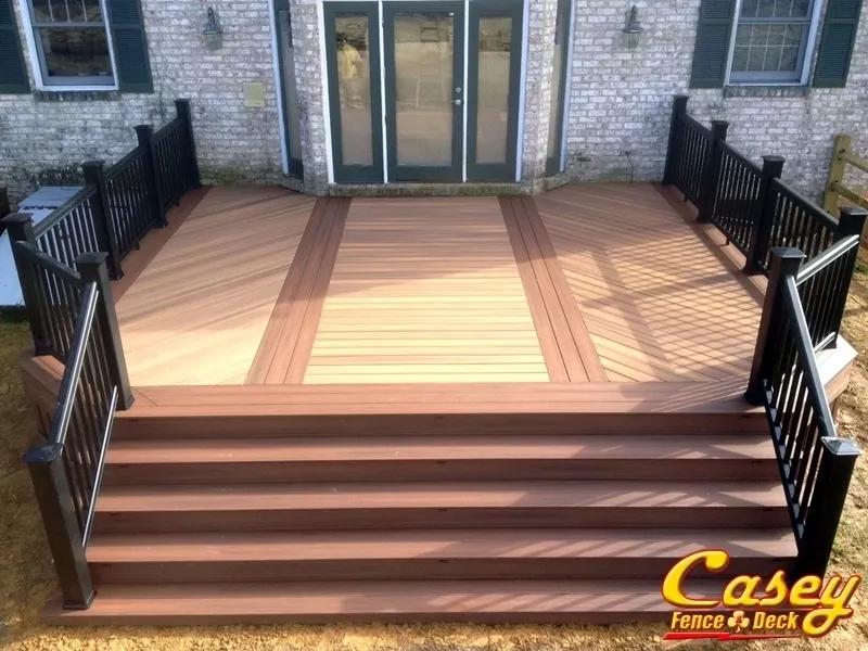 500 square foot Fiberon composite IPE deck with Fiberon Rosewood inlays, picture frame border, stairs, risers, and custom designed trim / skirting. - Middletown, MD