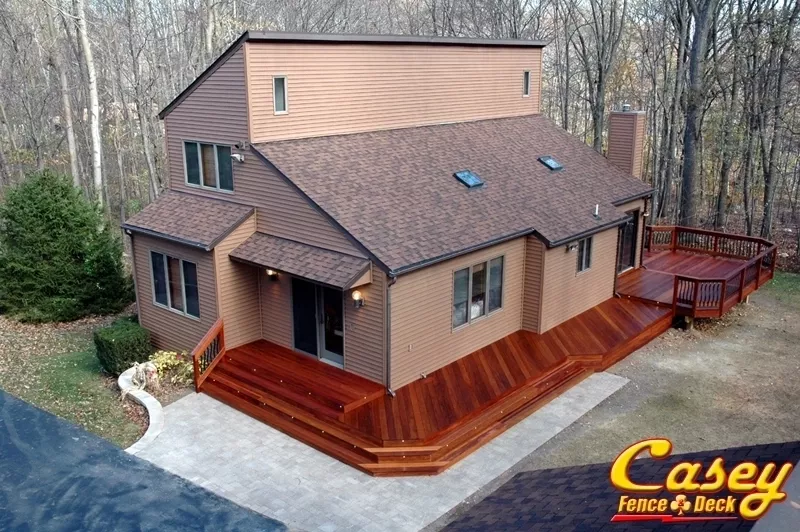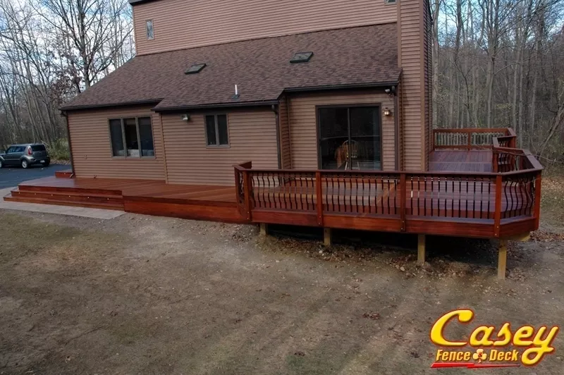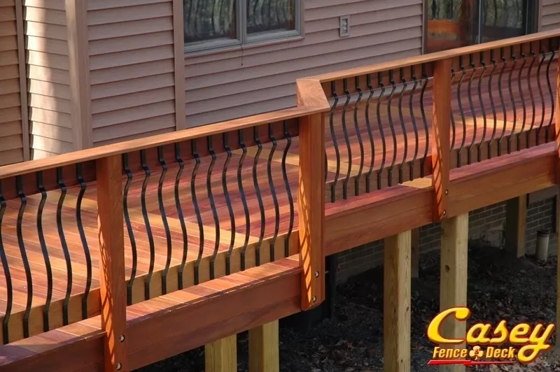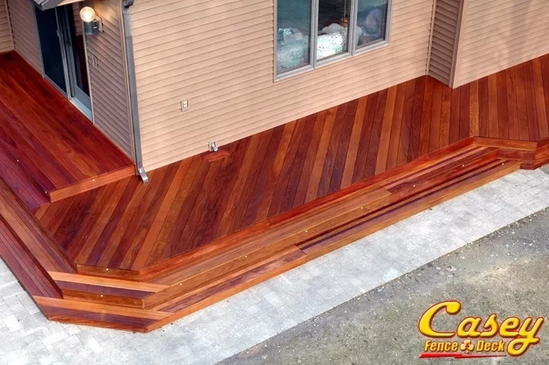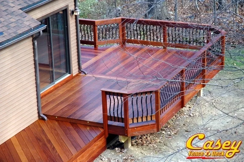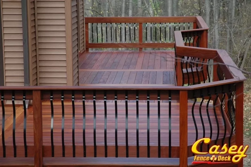 Real Brazilian Teak (Red Cumaru) Wood deck with Real Brazilian Cherry (Jotoba) Wood rail posts in Jefferson, MD - jefferson, MD.