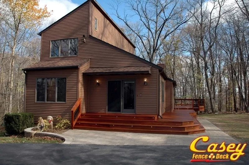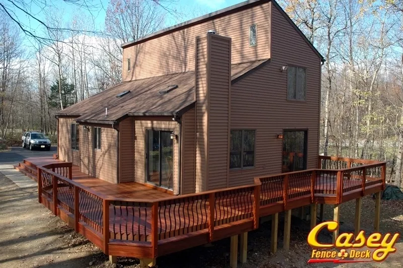 Over 3000 linear feet of decking was used to construct this beautiful Real Brazilian Teak (Red Cumaru) Wood deck with Real Brazilian Cherry (Jotoba) Wood rail posts in Jefferson, MD. - jefferson, MD.