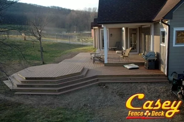 Large Evergrain composite deck with wrap around steps and elevated Octagon platform